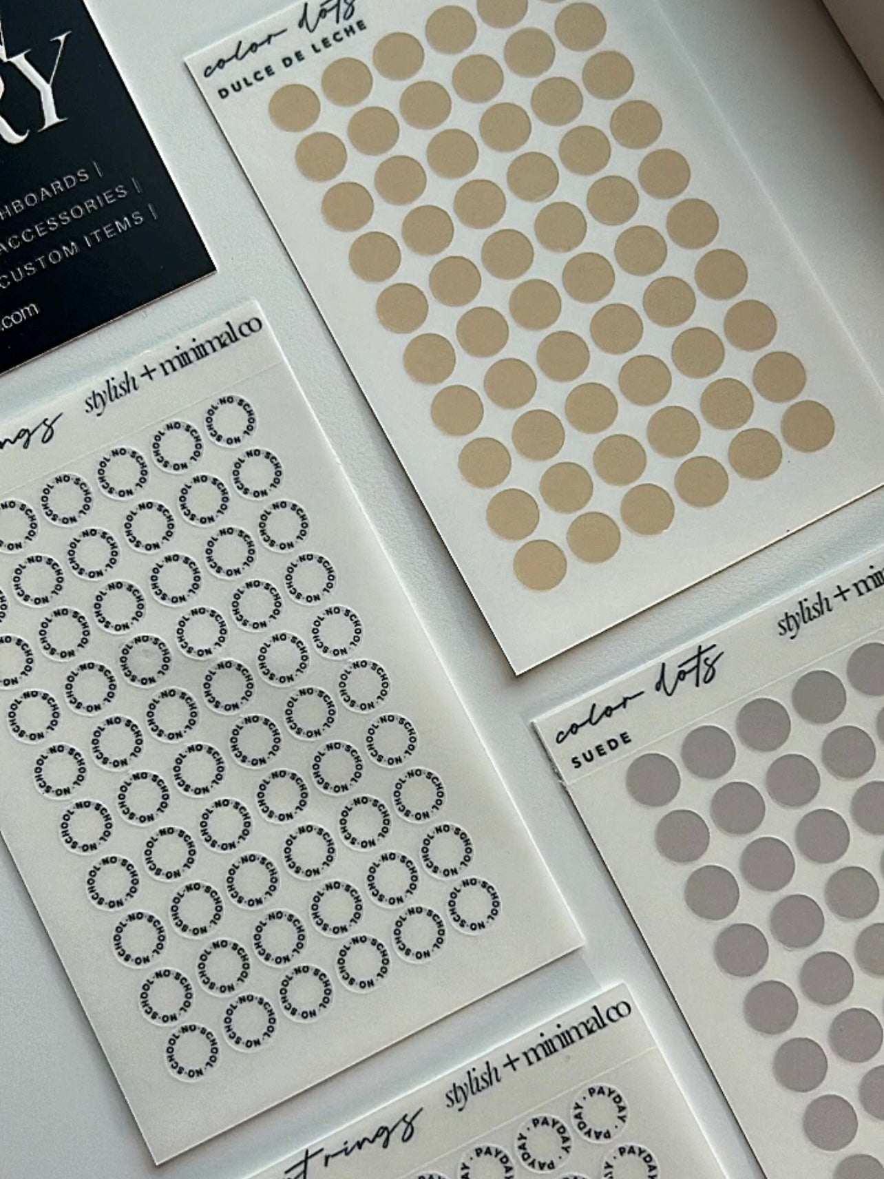 This sticker sheet includes 60 stickers for text date cover dots.