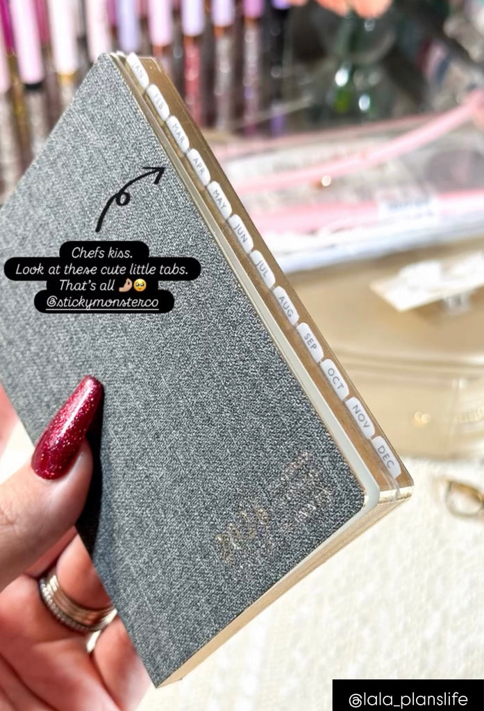 sheet of 16 index tabs to include 12 ABBREVIATED months of the year and 4 frequently used tab titles. (lists, trackers, reference, inbox)