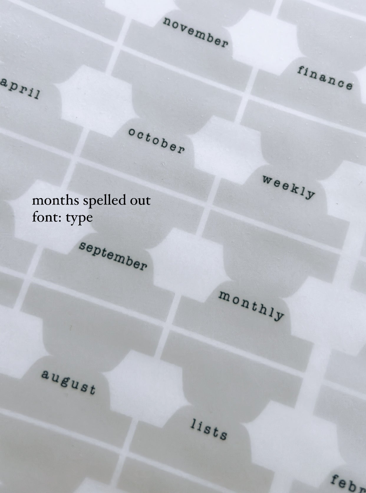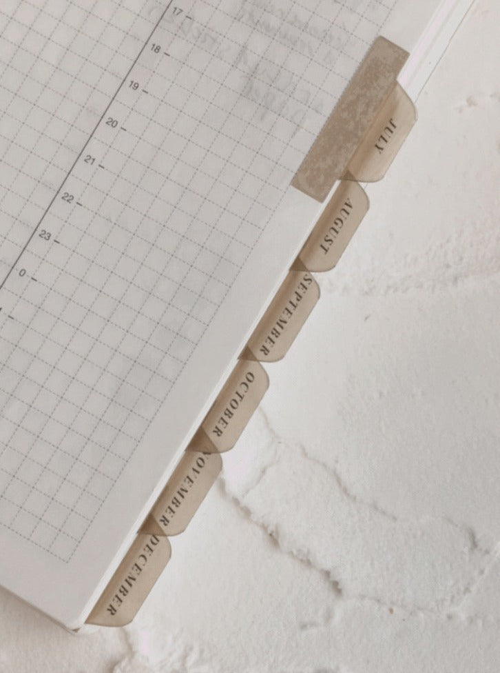 sheet of 18 index tabs to include 12 abbreviated months of the year and 6 frequently used tab titles. ( monthly, weekly, lists, daily, trackers, notes)