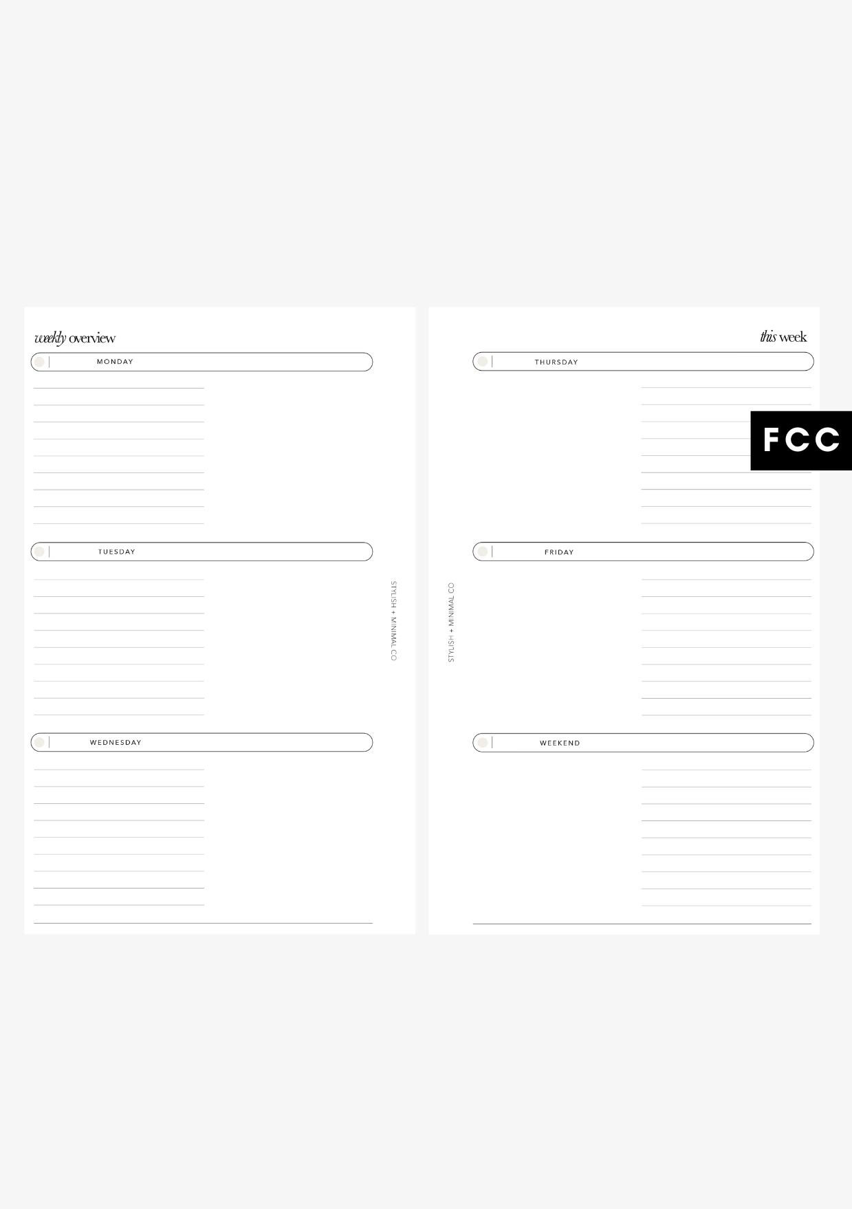 - 12 sheet/24 pages (3 months worth of weeks)