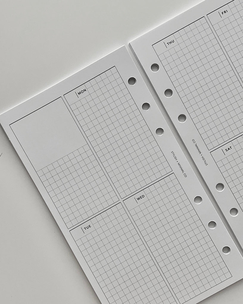 - Pre-punched 6 hole for ring planners (Personal, FCCompact, A5)