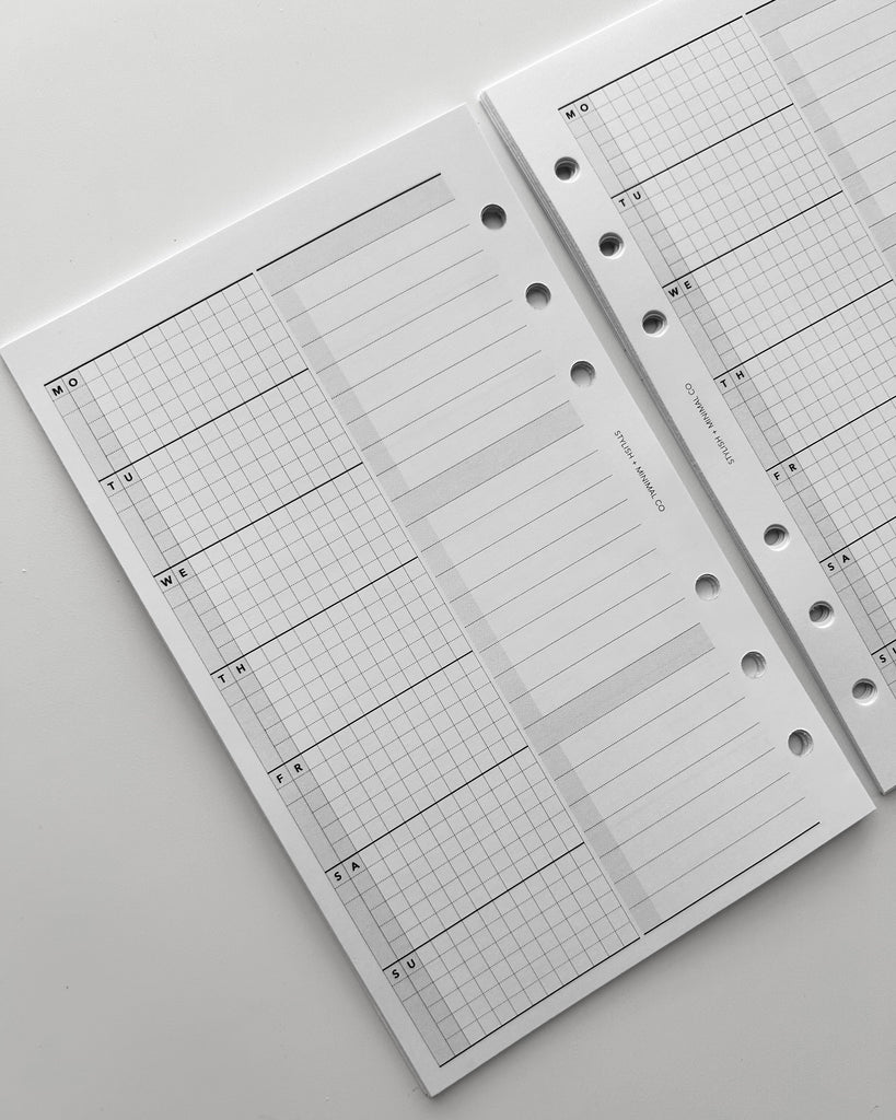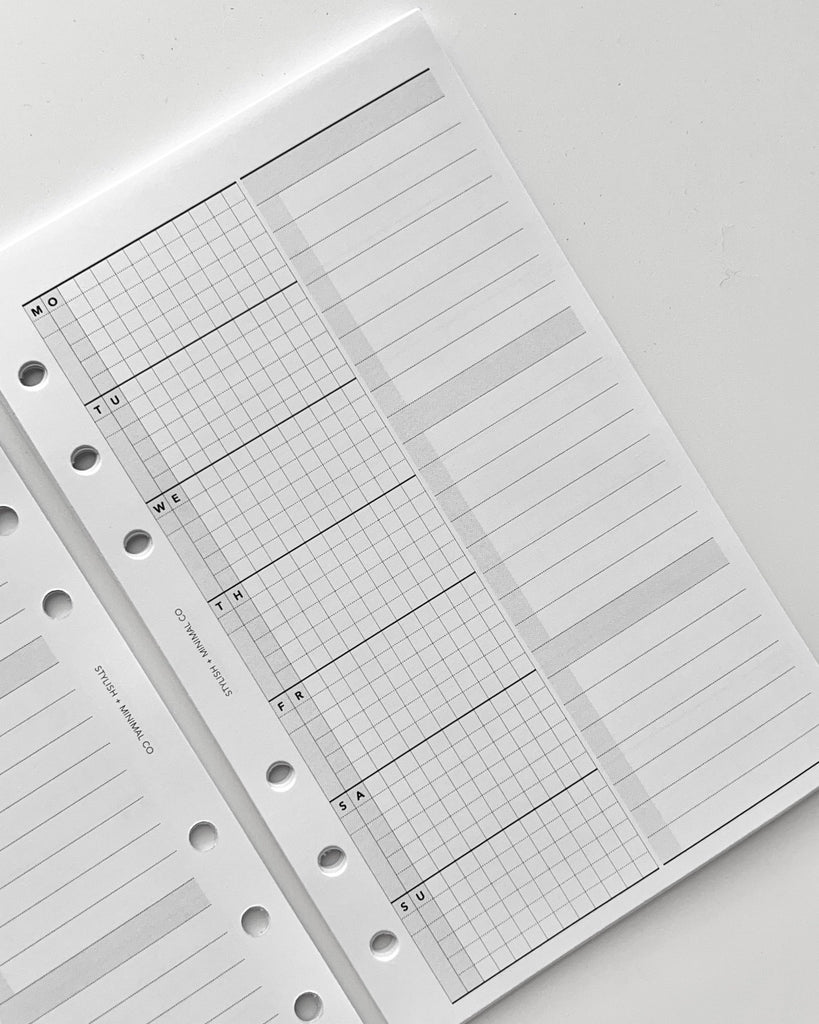 - Pre-punched 6 hole for ring planners (Personal, FCCompact, A5)
